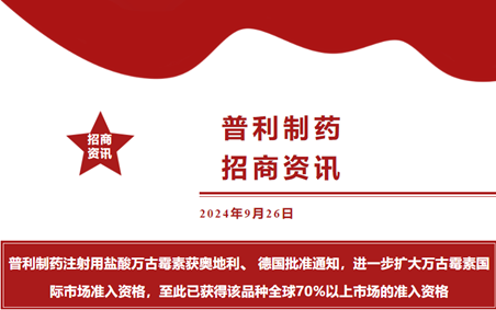 【戰(zhàn)略合作招商】普利制藥注射用鹽酸萬古霉素獲奧地利、德國(guó)批準(zhǔn)通知,進(jìn)一步擴(kuò)大萬古霉素國(guó)際市場(chǎng)準(zhǔn)入資格!