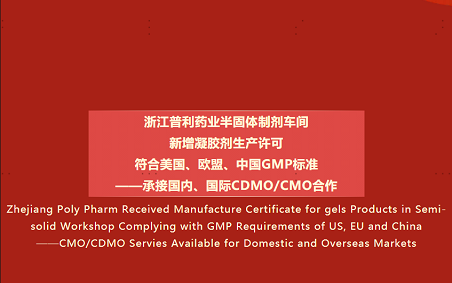 浙江普利藥業(yè)半固體制劑車間新增凝膠劑生產(chǎn)許可,可符合美國(guó)、歐盟、中國(guó)GMP標(biāo)準(zhǔn)——承接國(guó)內(nèi)、國(guó)際CDMO/CMO合作