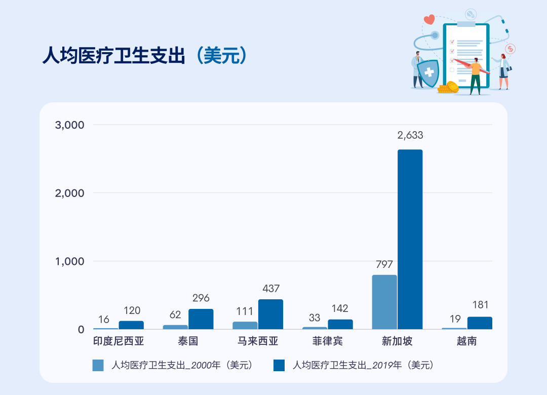 數(shù)達(dá)2.79億人,65歲以上的人口數(shù)量超過1700萬,占比5.95%。東南亞地區(qū)的醫(yī)療剛需與保健需求在較長時期內(nèi)將保持穩(wěn)健增長。