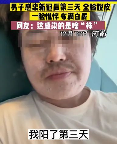 還有人中了新冠感染之皮皮株后,臉部成了這樣:河南一男子感染新冠后第三天,全臉脫皮,一臉憔悴,布滿白屑!