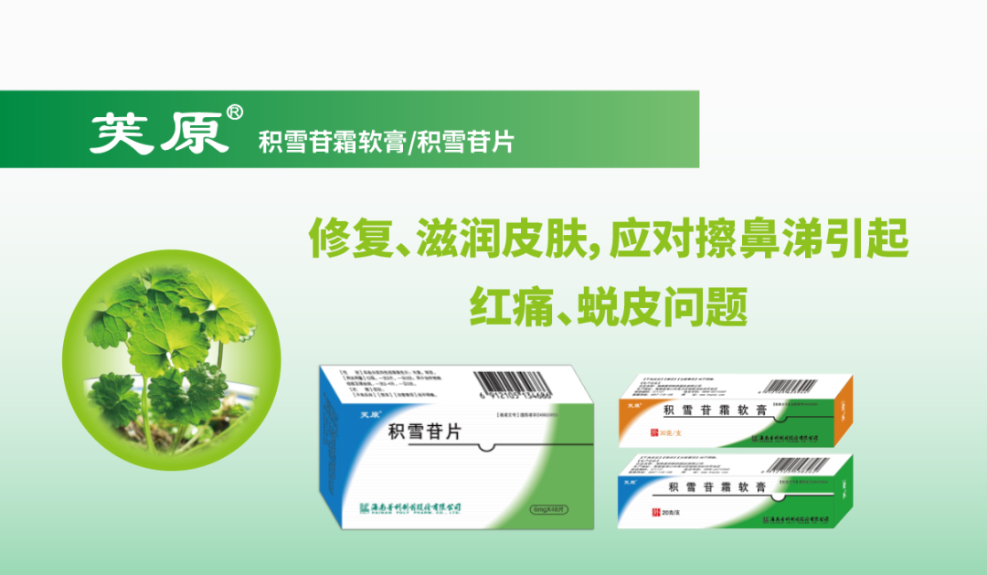 二、對癥治療:可使用溫開水清洗面部及鼻部皮膚,并外涂積雪苷霜軟膏等消除局部炎癥,保護(hù)鼻周局部及面部皮膚,從而改善鼻子擦紅起皮及皮皮株后整個面部脫皮的現(xiàn)象。研究顯示,積雪苷霜軟膏在抑制瘢痕增生、修復(fù)皮膚損傷方面突顯出獨(dú)特的優(yōu)勢:一方面,可以通過增強(qiáng)細(xì)胞的遷移活性,提高傷口愈合率[1,2];另一方面,積雪苷可通過抑制瘢痕成纖維細(xì)胞的增殖及膠原蛋白的合成,抑制瘢痕增生[3]。