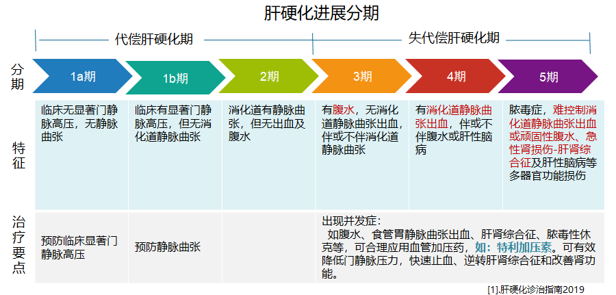 據(jù)調(diào)查顯示,我國目前肝硬化患者約700萬,且仍呈增長趨勢。在臨床上,對肝硬化的進(jìn)展分為5期,代償期(1、2期)和失代償期(3、4、5期),其年病死率分別為1.5%、2%、10%、21%和87%。對于肝硬化患者進(jìn)展到失代償期,影像學(xué)檢查可有典型門靜脈高壓及肝硬化證據(jù),多數(shù)臨床特征伴有腹水、消化道出血、肝性腦病等并發(fā)癥。