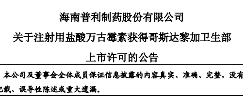5.注射用鹽酸萬(wàn)古霉素獲得哥斯達(dá)黎加衛(wèi)生部上市許可。
